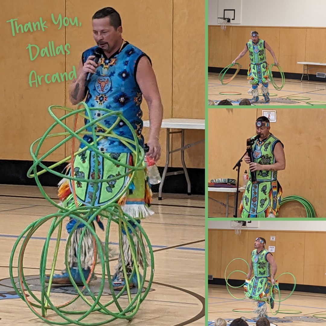 We were so fortunate to have Dallas Arcand at the school this week! What an amazing, entertaining, and educational performance by three-time World Champion Hoop Dancer Dallas Arcand! Thank you so much, Dallas!