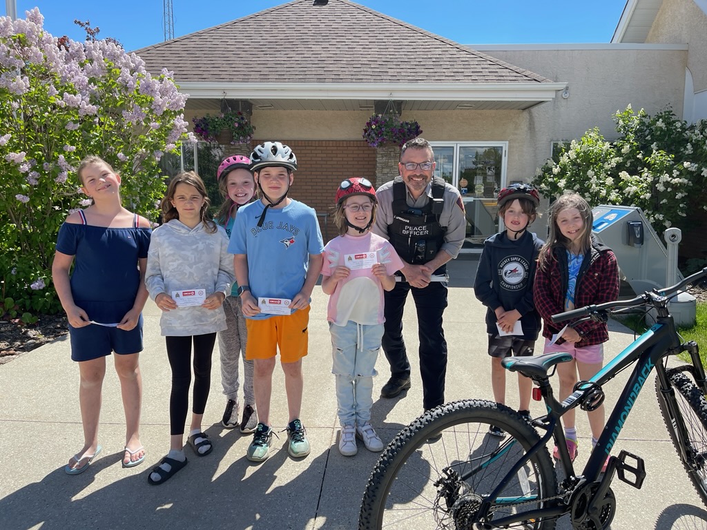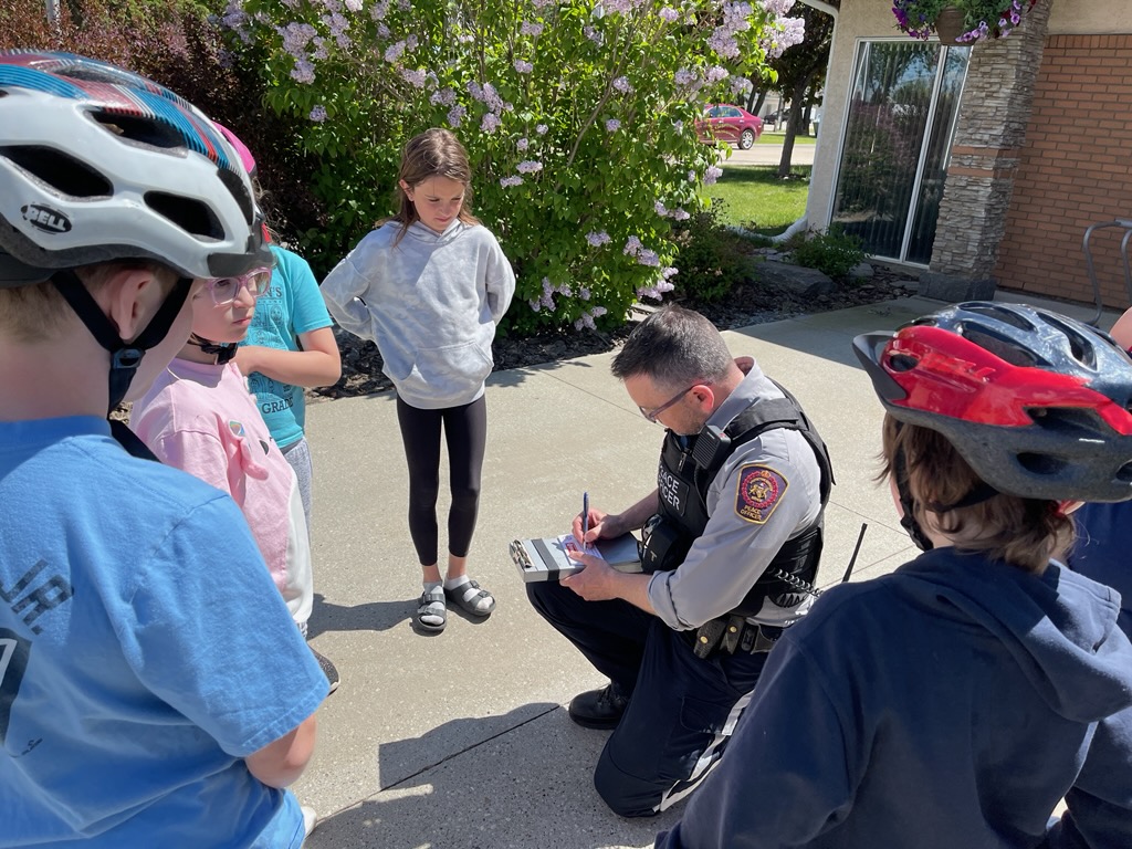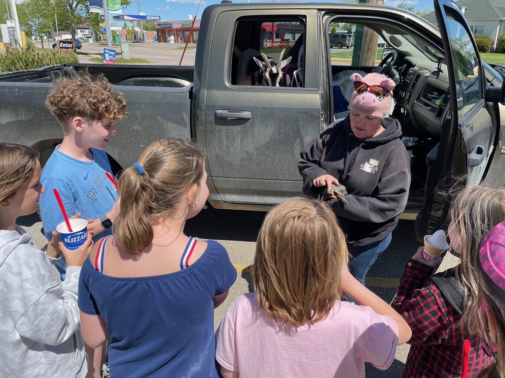 The winners of the Spell-a-thon prize of going to DQ with Mrs. Forchuk & Mrs. Tewitz were surprised with more than just an ice cream treat! Along the way, they were stopped by a Peace Officer who gave each one of the students a ticket! The officer caught them each doing something good and they received a Safe Riding ticket that they can trade in for a free slush at the Circle K. If that wasn’t enough excitement they also met the owner of Pigtopia who let the kids see a goat and a couple of turtles she had with her. The students had a great time!