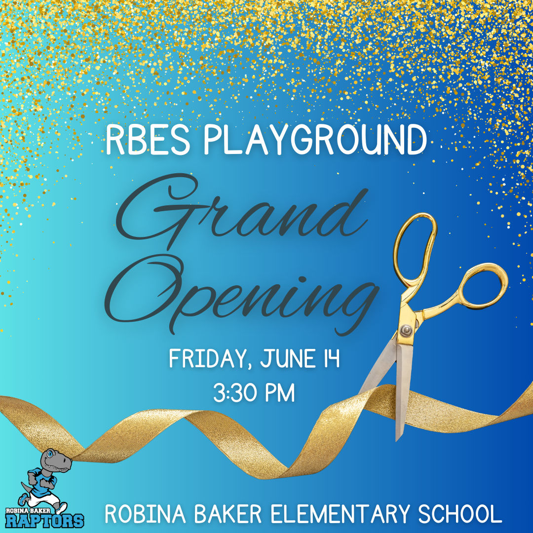 We are so excited to inform you that we are having our Grand Opening of our new playground on Friday, June 14 from 3:30 – 5: 00 p.m.