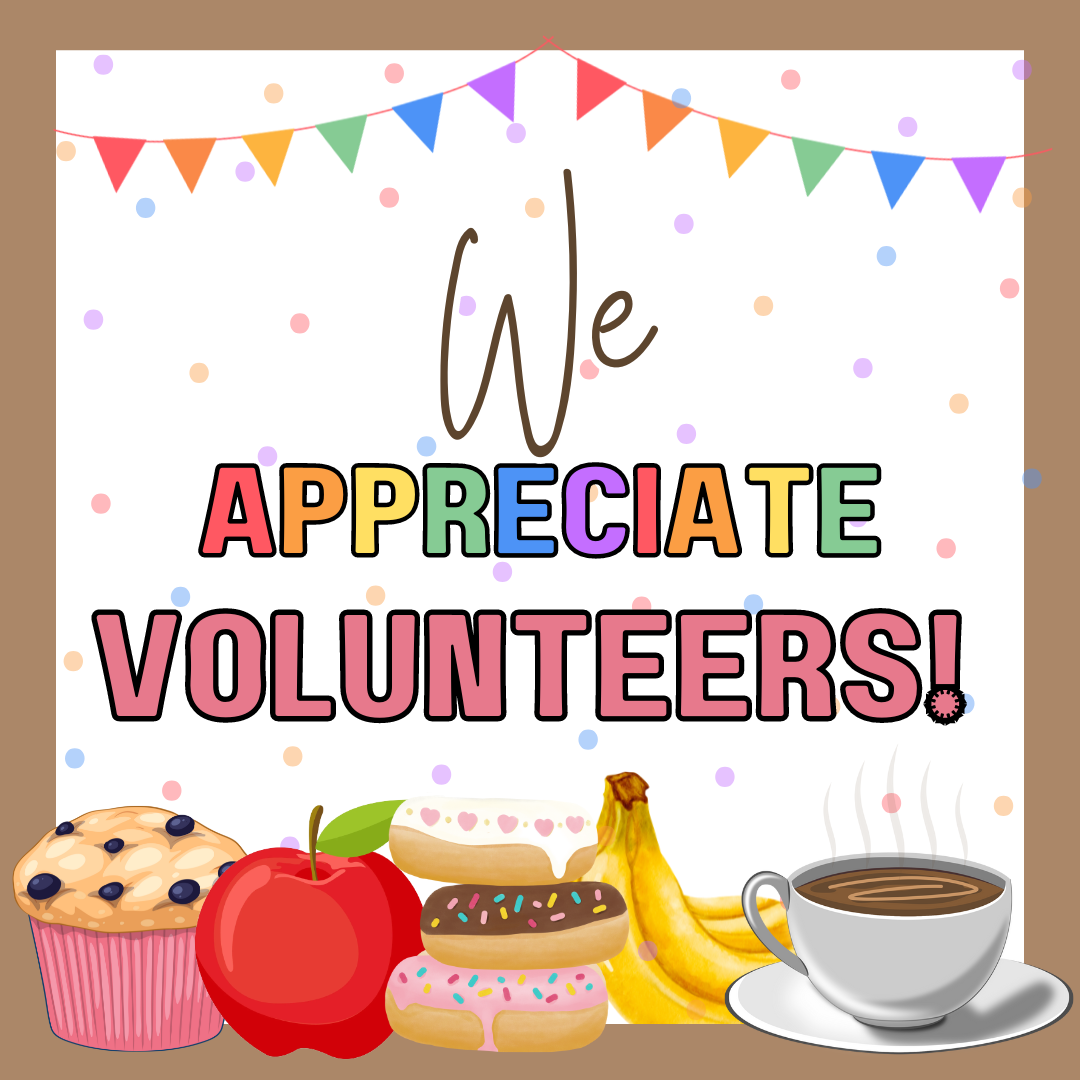 Please join us on Friday, May 31 for our Volunteer Appreciation event! Drop in anytime between 7:30 and 9:30 a.m. and grab some delicious treats. Everyone who has volunteered at the school this year is invited! Whether you volunteered to tie skates, read in the classroom, or went on a field trip, we greatly appreciate your time!