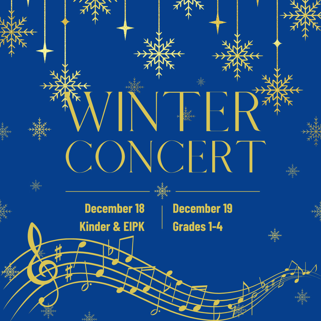 We are so excited for our Winter Concerts starting soon! On Wednesday, December 18 EIPK (PreK) parents are invited to the Music Room at 5:45 p.m. Kindergarten parents will be in the Gym starting a 6:30 p.m.