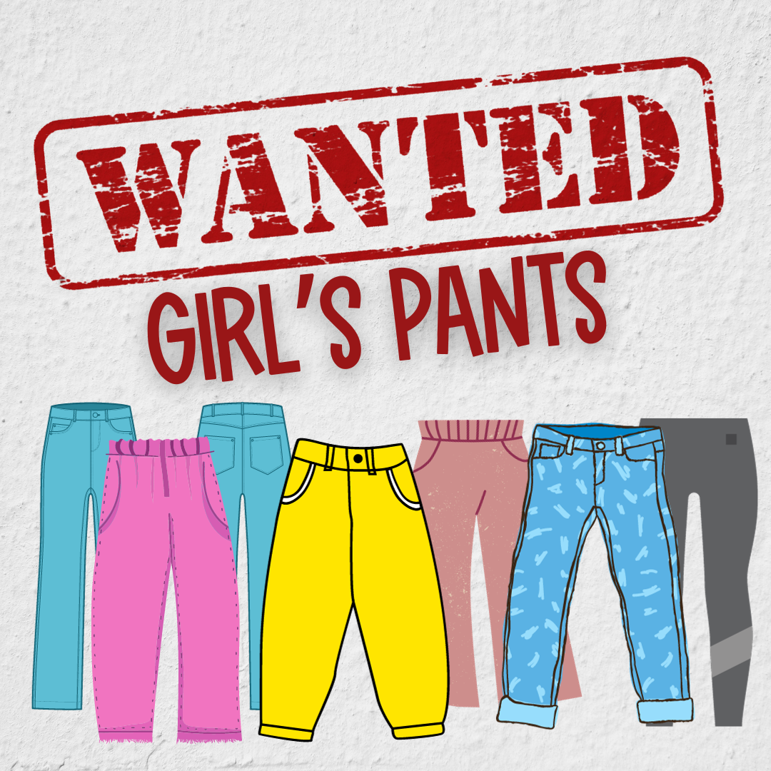 In the office, we often need to lend out clothes to students who have had accidents, spilled lunch, jumped in a puddle, or a variety of other situations that require a change of clothes. Currently, we are so low on girl’s pants and leggings. If you have any gently used items you can donate to the school that would be great!