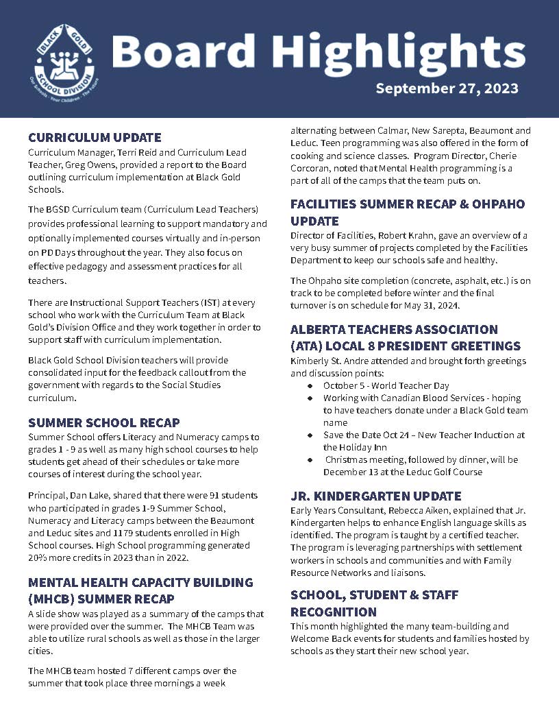 Black Gold Board Highlights
