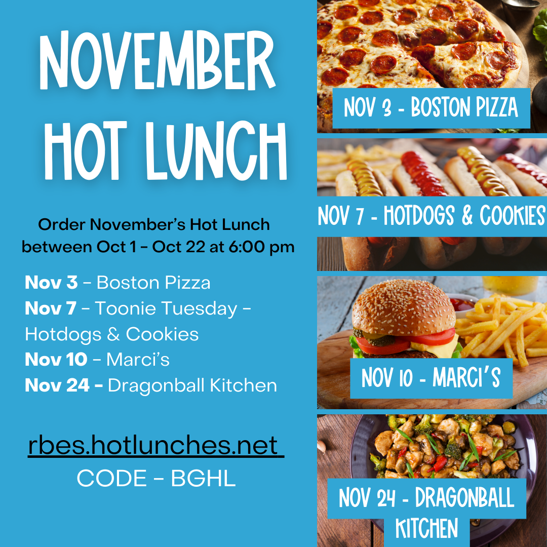You can order November’s Hot Lunch between October 1 – October 22 at 6:00 pm.