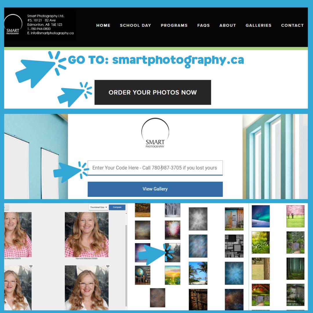 You can now order your school photos! Just go to smartphotography.ca; enter your code and choose your backgrounds! If you have lost your code that came home, you can ask your teacher or call the office at 780-987-3705.